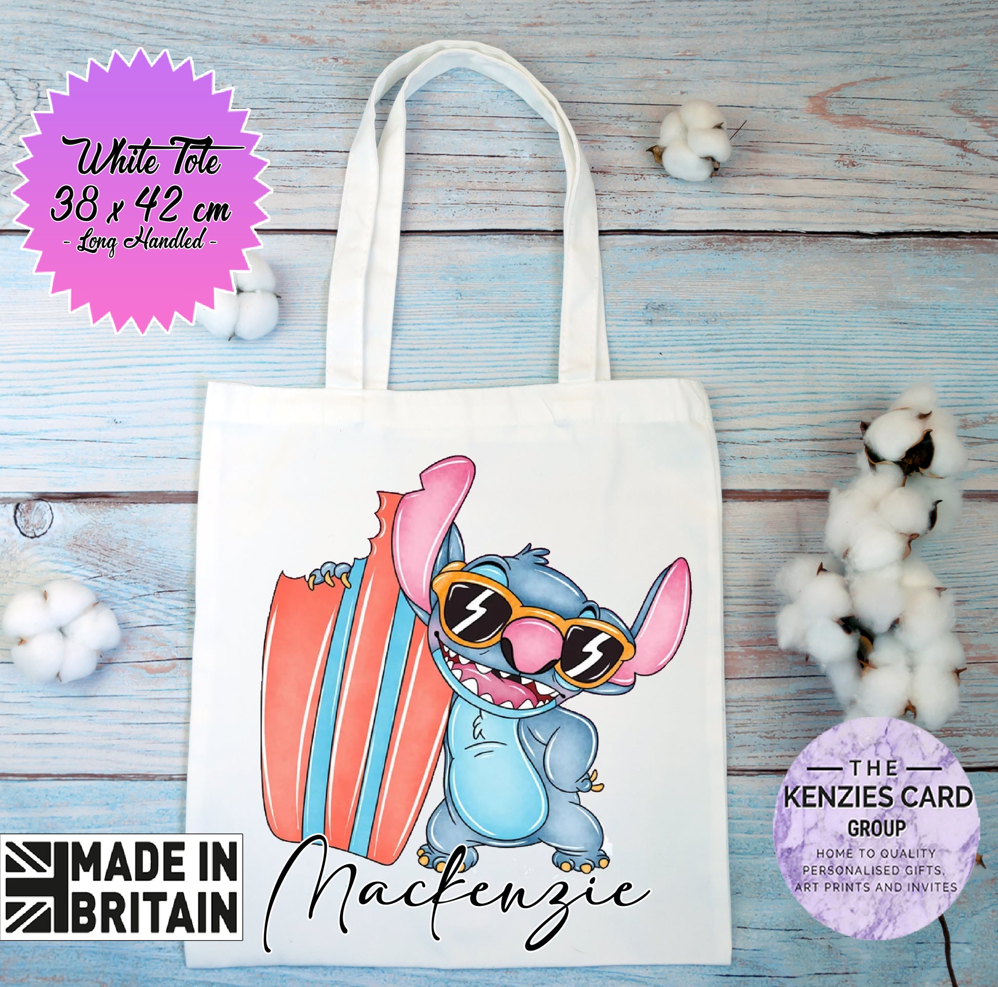 Copy of Personalised Lilo and Stitch Watercolour Tote Bag - White