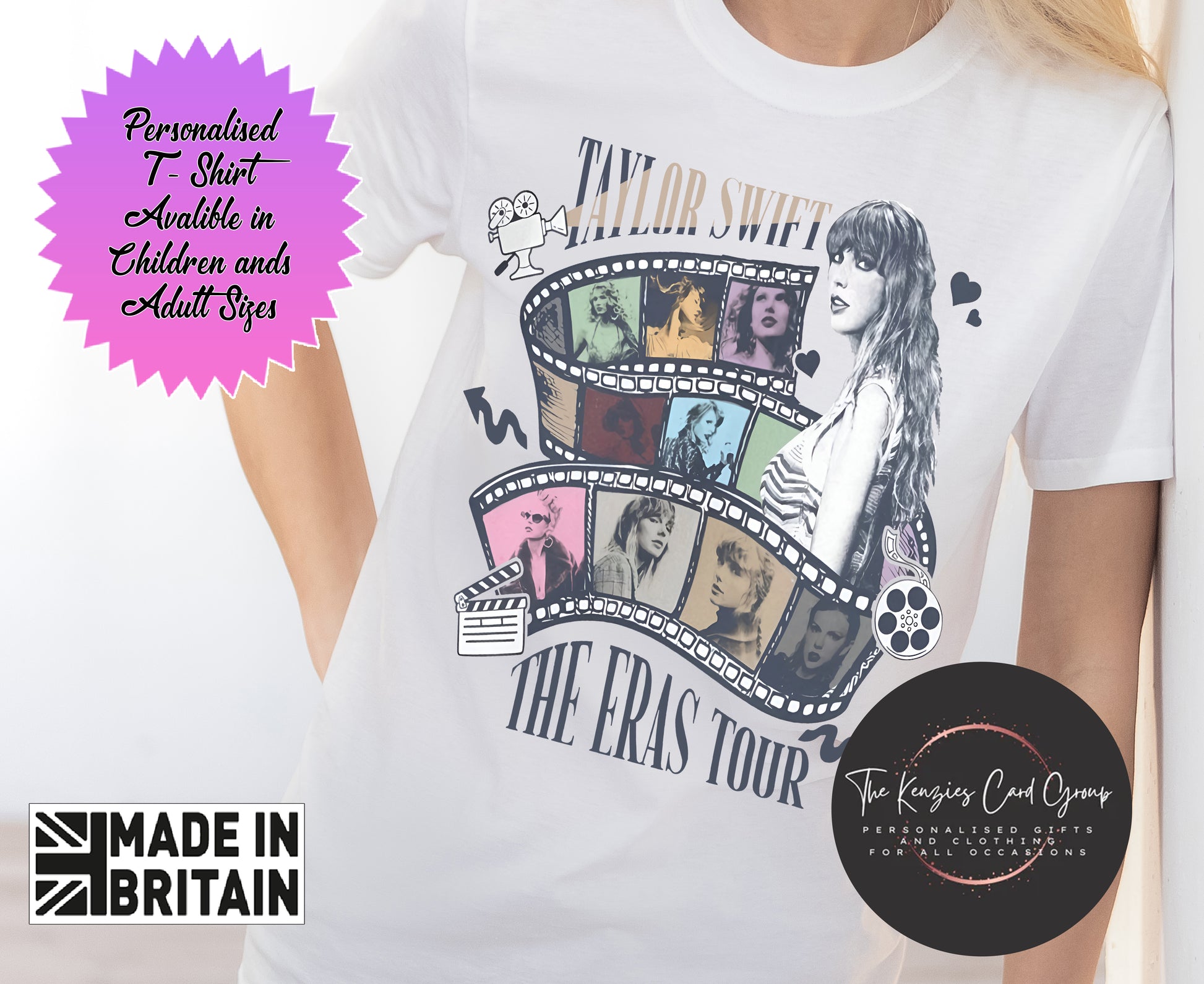 Personalised Taylor Swift Eras Tour Vintage Style T Shirt -Eras Movie Strip