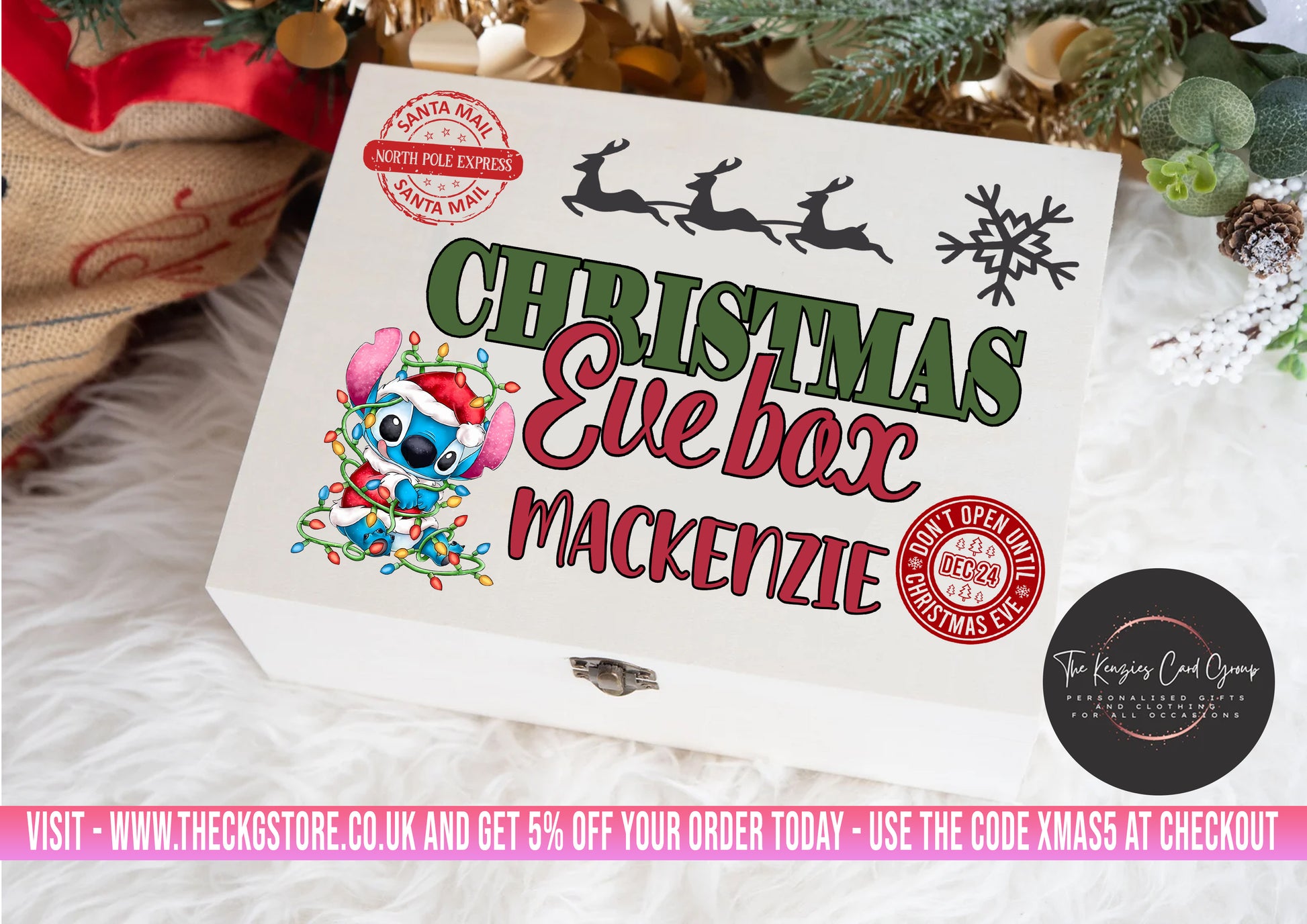 Personalised Christmas Eve Box - Wooden Christmas Eve Box - Stitch Edition