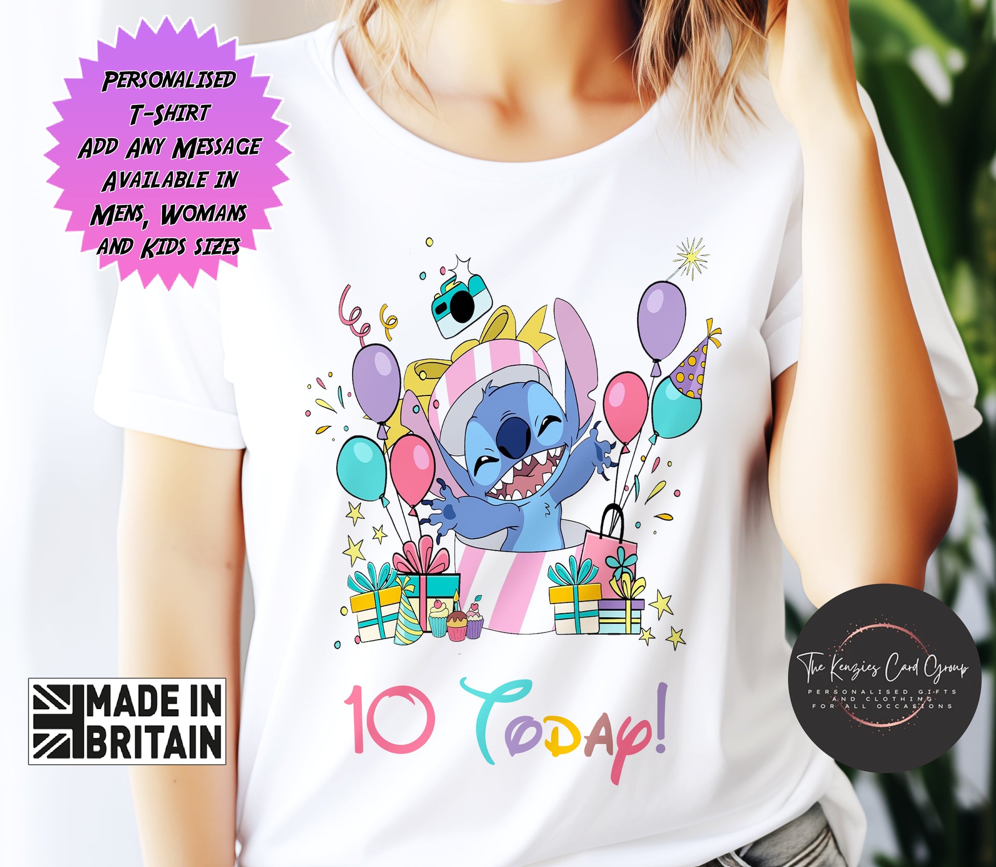 Personalised Disney Lilo and Stitch - Birthday T Shirt - Birthday Present Edition Stitch